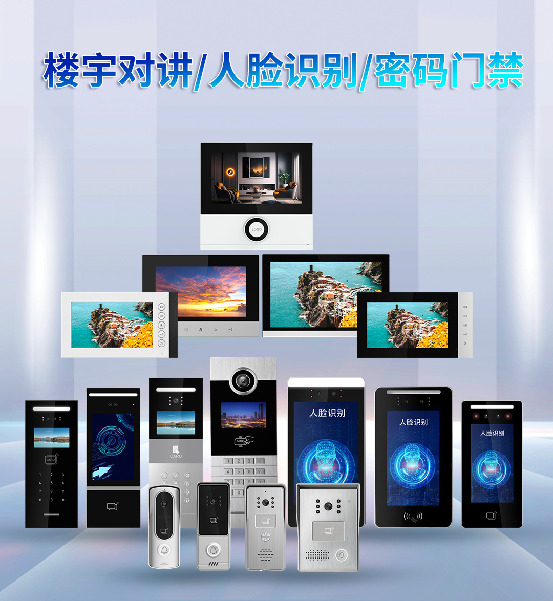 PC鏡片/鋁面板/玻璃蓋板加工 注塑/模具加工 人臉識別外殼 門口主機外殼 室內(nèi)分機外殼 門禁外殼 管理機外殼系列 分支器外殼 配件 電容屏觸摸款